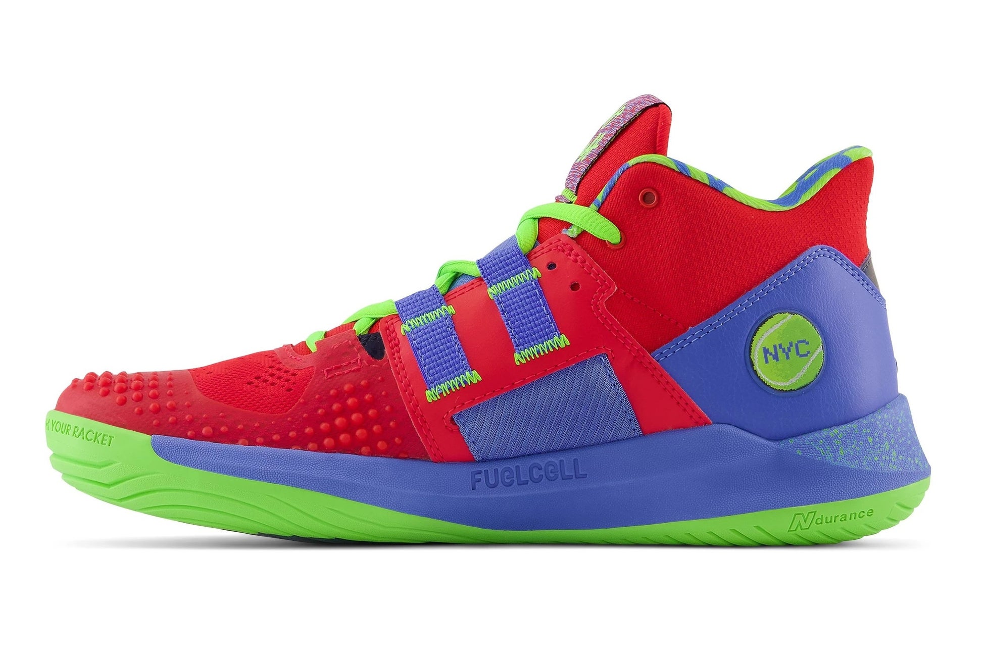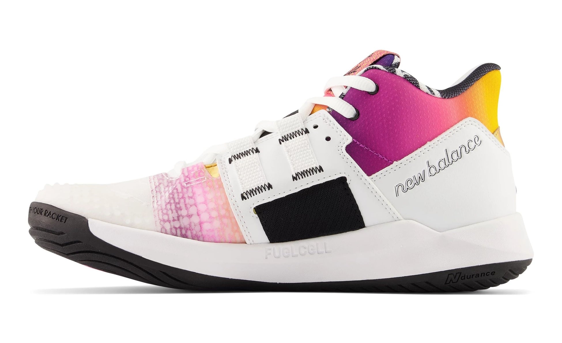 フルレングスのNDurance(エヌデュランス)ラバーアウトソールは、耐摩耗性に優れたラバーコンパウンドを改良した素材。シューズ寿命を向上し、マルチコートプレーに必要な耐久性とトラクションを提供します。