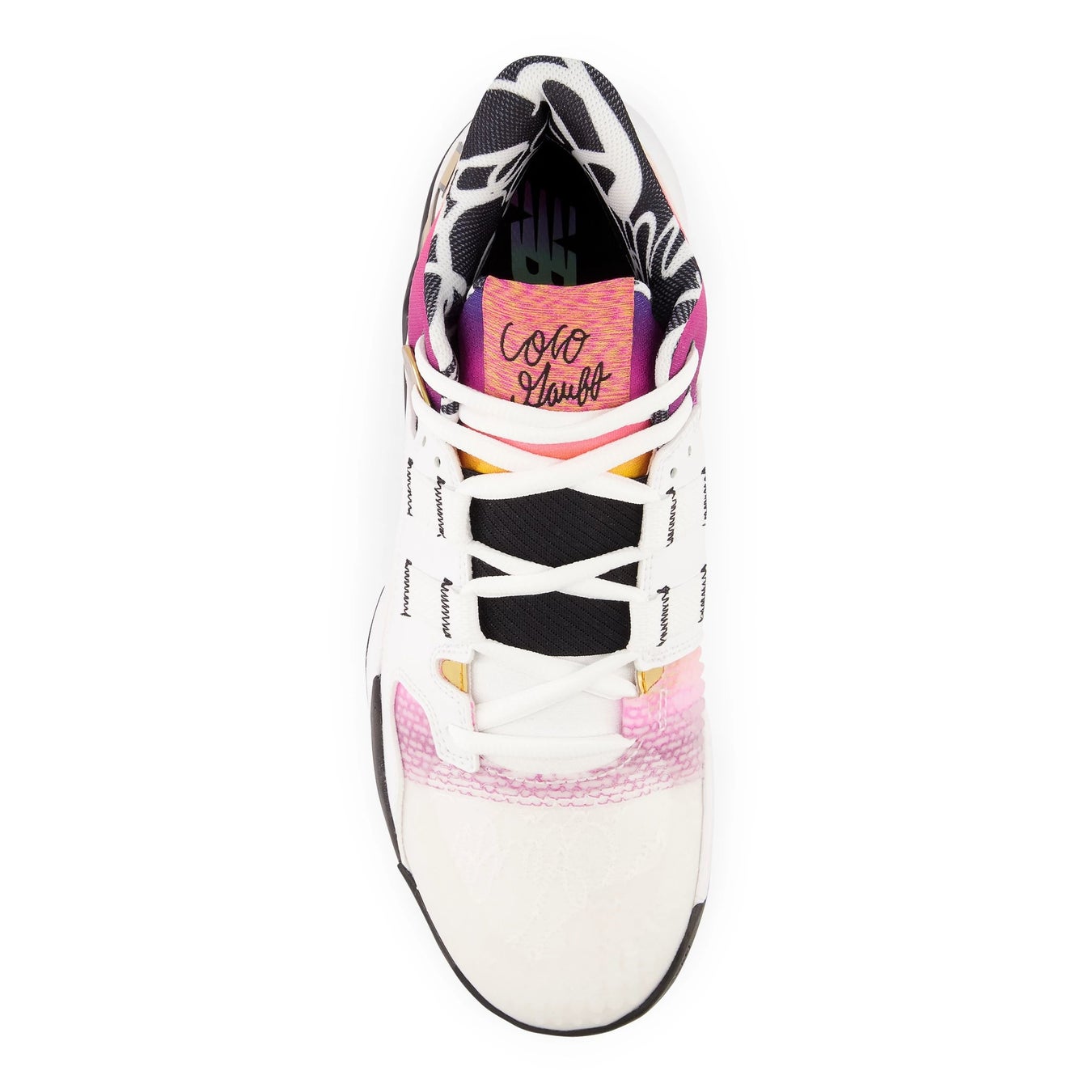 Coco CG1は、90年代にインスパイアされたミッドカットシルエットと、ニューバランスの最も革新的なテクノロジーとデザインのディテールを組み合わせ、スポーツとファッションの世界を超越しています。ココ・ガウフ選手は、ニューバランスのデザインチームと密接に協力し、このシューズのデザインに、家族の大切さと次世代を牽引していきたいという想いを込めています。