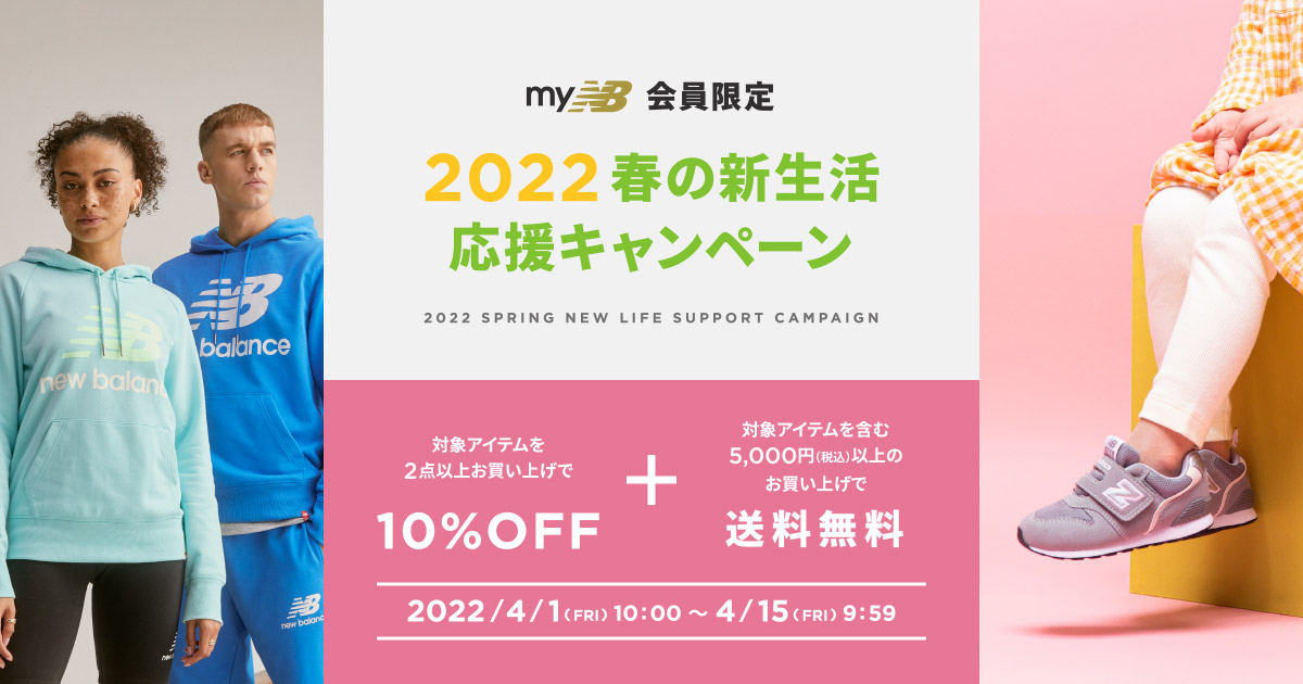 ニューバランスは新しい一歩を踏む出す新生活をはじめる皆様に向けて、公式オンラインストアにてmyNB会員様限定の「春の新生活応援キャンペーン」を開催し新たな門出をお祝いいたします。また、新生活での新しいシューズ選びをご検討の方へ直営店舗にてぜひ体験いただきたい「シューズフィッティング」サービスをご紹介いたします。この機会にぜひニューバランスのキャンペーンやサービスをご利用ください。