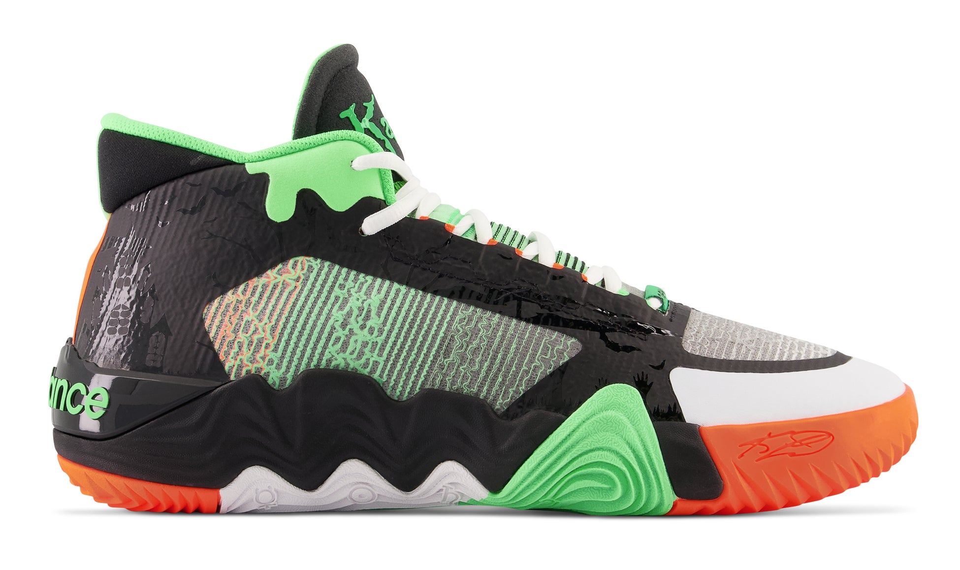 カワイ選手のシグネチャーシューズのオリジナルを大幅に軽量化したもので、選手本人からのリクエストで作られたものです。このセカンドバージョンは、カワイ選手の目標である「より軽く、より爆発的に」を実現するために、新しいパフォーマンステクノロジーを詰め込んでいます。フルレングスのFuelCellミッドソールと連動し、究極のエネルギーリターンを実現するパフォーマンスプレートをアップデートして搭載しています。アッパーにはNB HOOPSのデザインチームが開発した、軽量で優れたフィット感をもたらすFitWeavebLiteを採用。プレーヤーが必要とする部分に適応した伸縮性とサポート力を与えます。