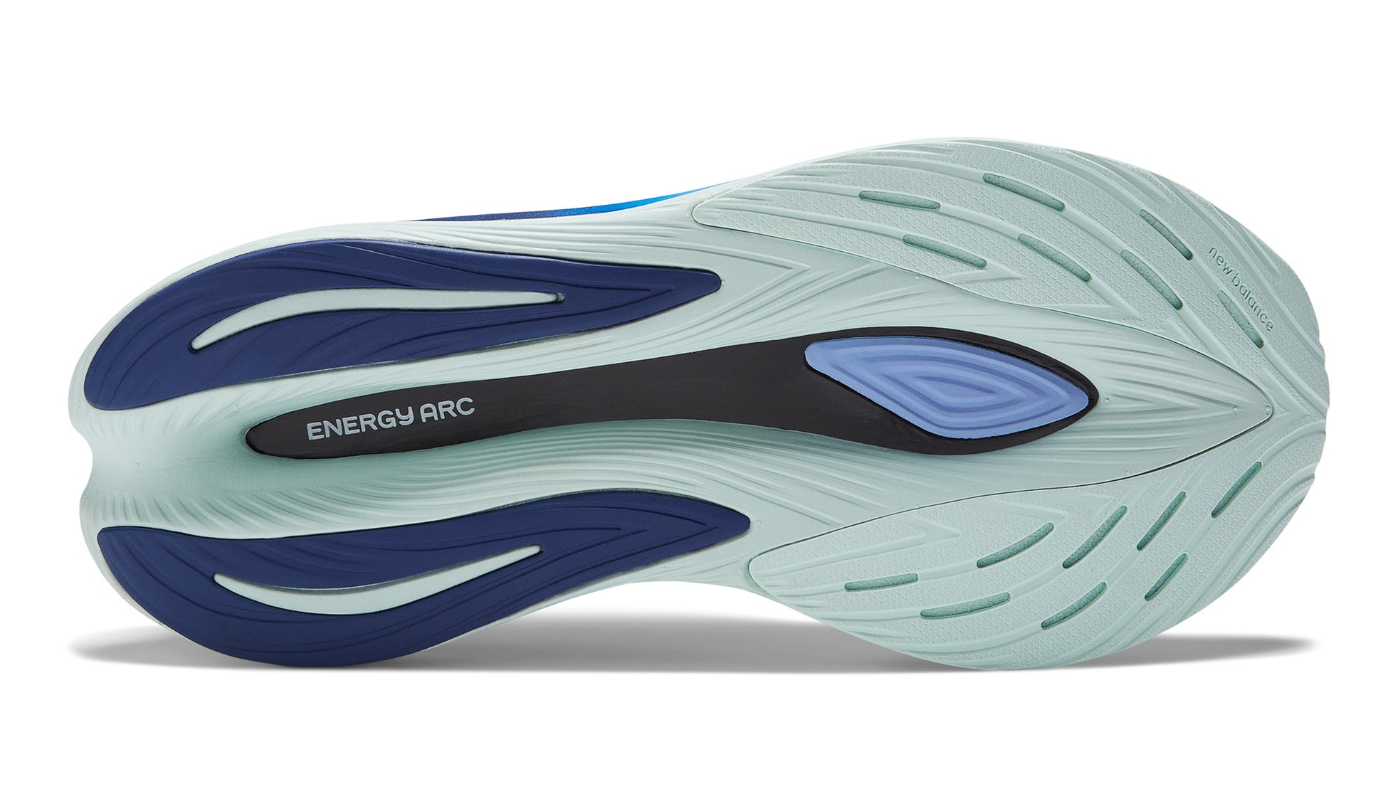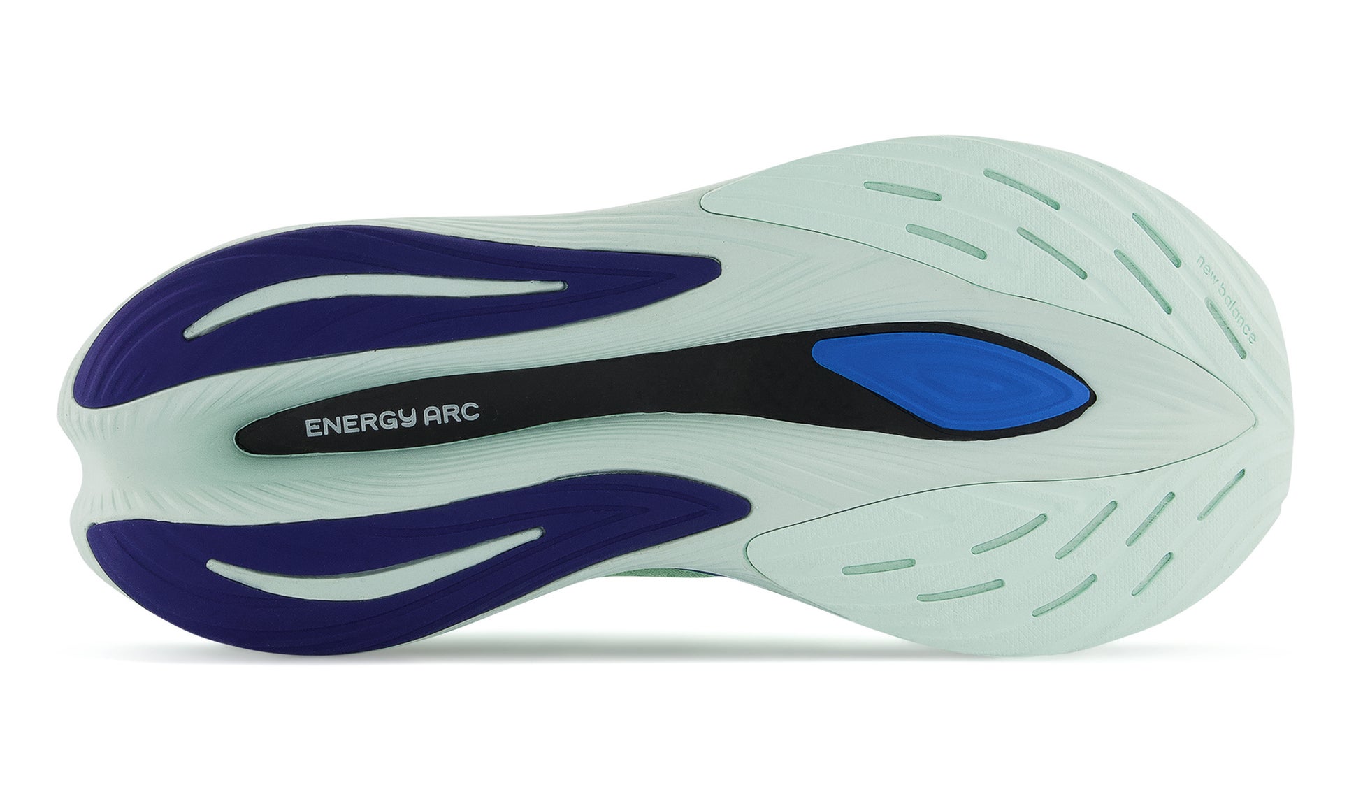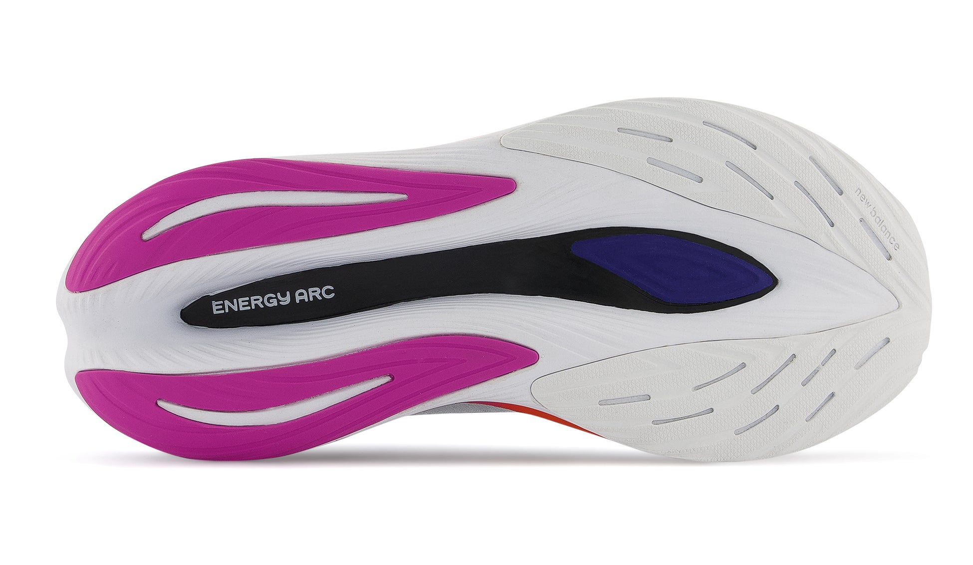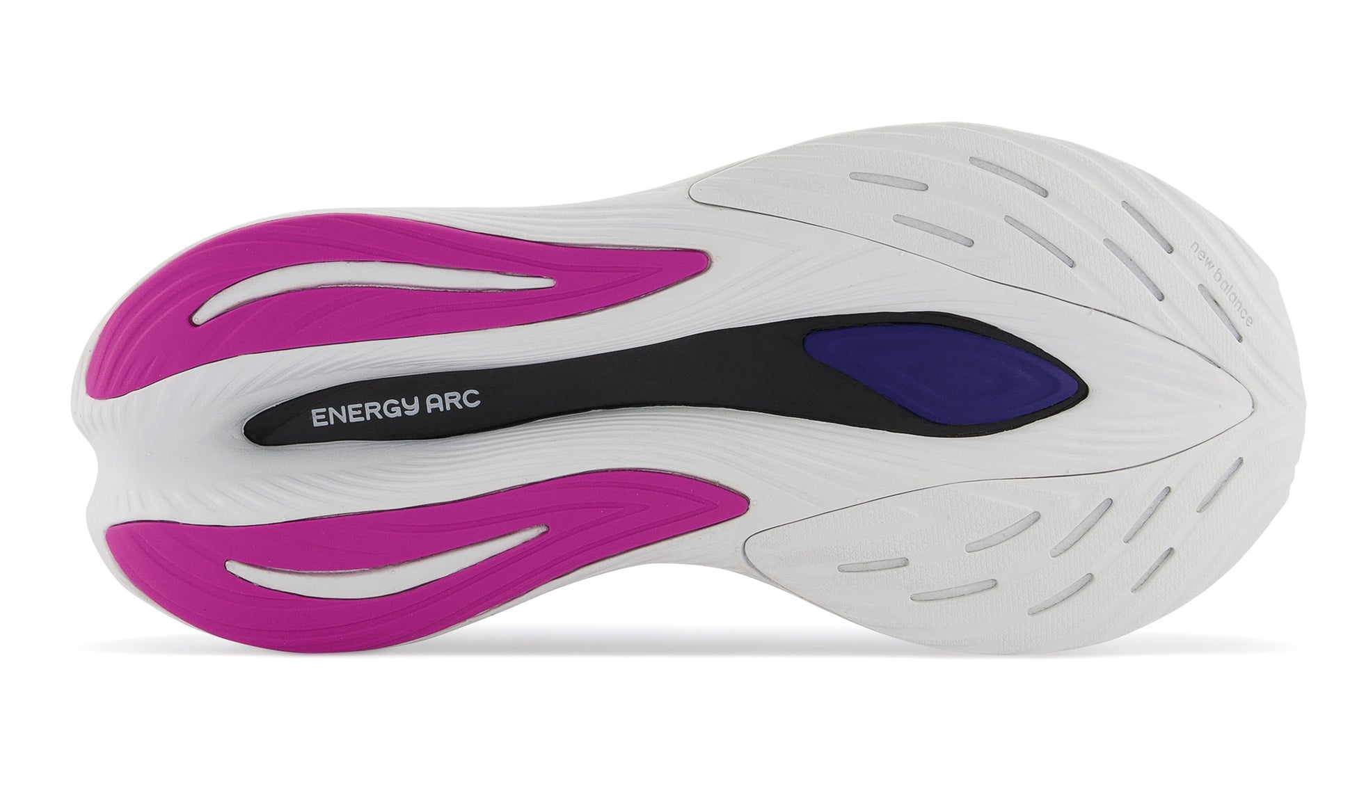 FuelCellシリーズ史上最も厚い40㎜ルール(※)を超えた極厚ソールは、2層のFuelcellにカーボンプレートを挟み込んだENERGY ARCを搭載。ENERGY ARC特有の空洞が、加重時に更なるエネルギーの貯蓄を促す。最大限のエネルギーリターンを得て、走行時における爆発的な推進力でスピードあるライド感を提供。