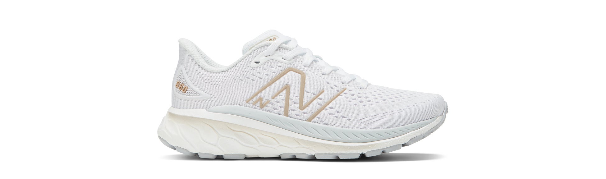 クッショニングと反発性を高めた2層構造ミッドソール、洗練されたデザインアッパーを採用しアップデートした男性用スタビリティモデル「Fresh Foam X 860」。踵部の巻き上げを高くしたロッカーボトム形状、内側への倒れ込みを抑えるMedial post、インナーサドルを搭載し足をしっかりホールドするアッパーが、快適で安定した走りをサポートします。環境に配慮した材料を使用したサステナビリティプログラム対象商品。