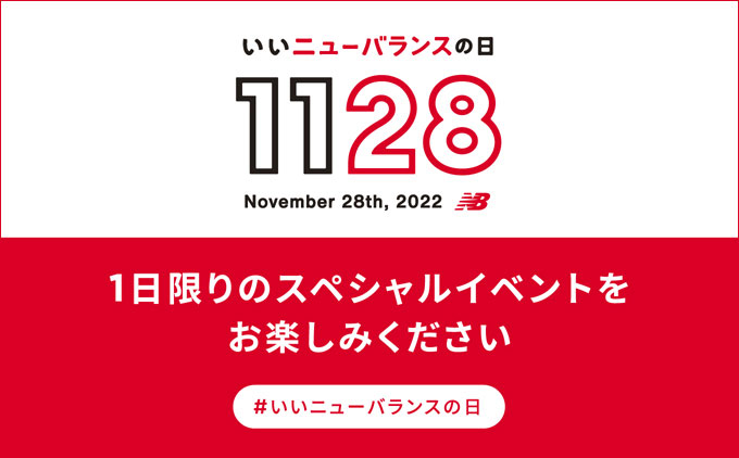 毎年11月28日(日)を「いいニューバランスの日」とし、1日限りのスペシャルイベントをニューバランスオフィシャルストア、ニューバランスファクトリーストアの直営店舗43店舗にて今年も開催いたします。