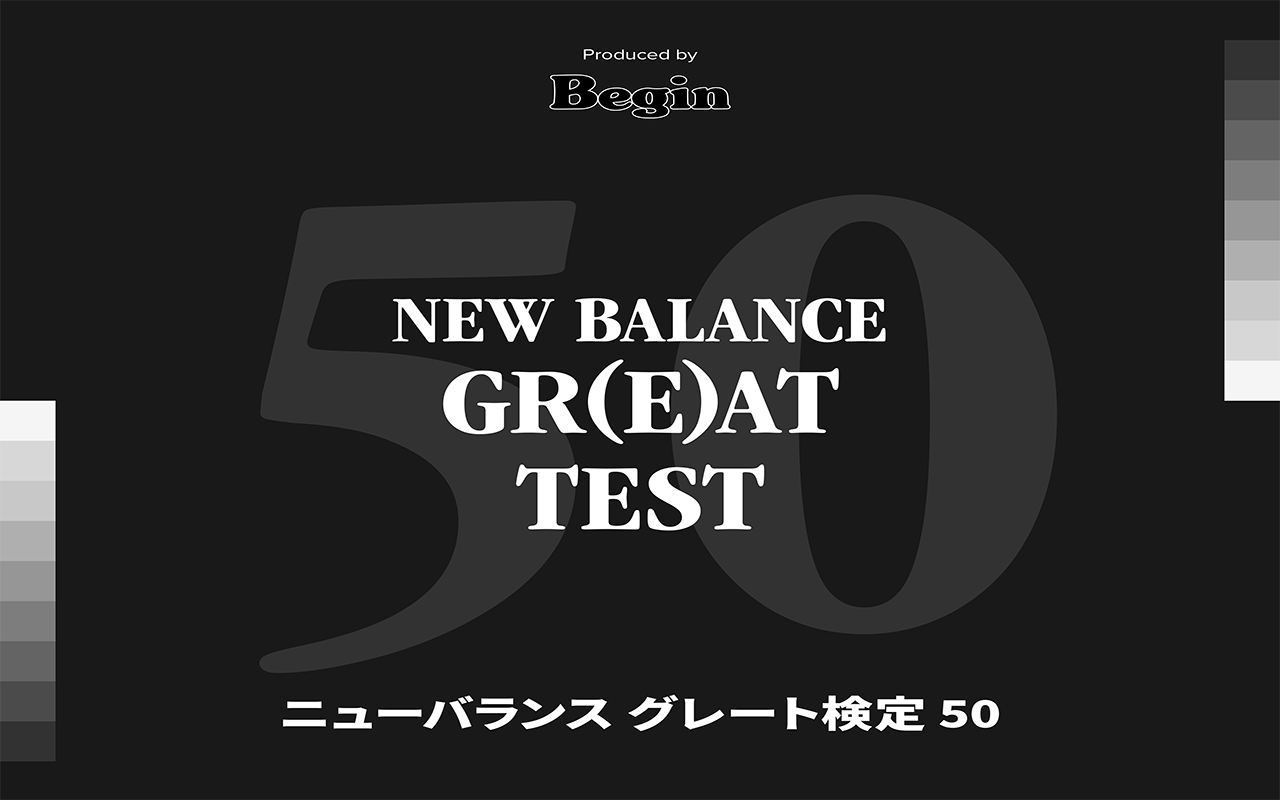 今年の「Grey Day」を楽しむひとつとしてローンチしたのが、この「ニューバランスグレート検定50“GR(E)AT TEST”」です。基本的な問題から、ニューバランスを掘り下げて紹介し続けてきた『Begin』ならではのマニアックな問題まで、50のクイズがそろいました。我こそは、という方!ぜひチャレンジしてみてください。