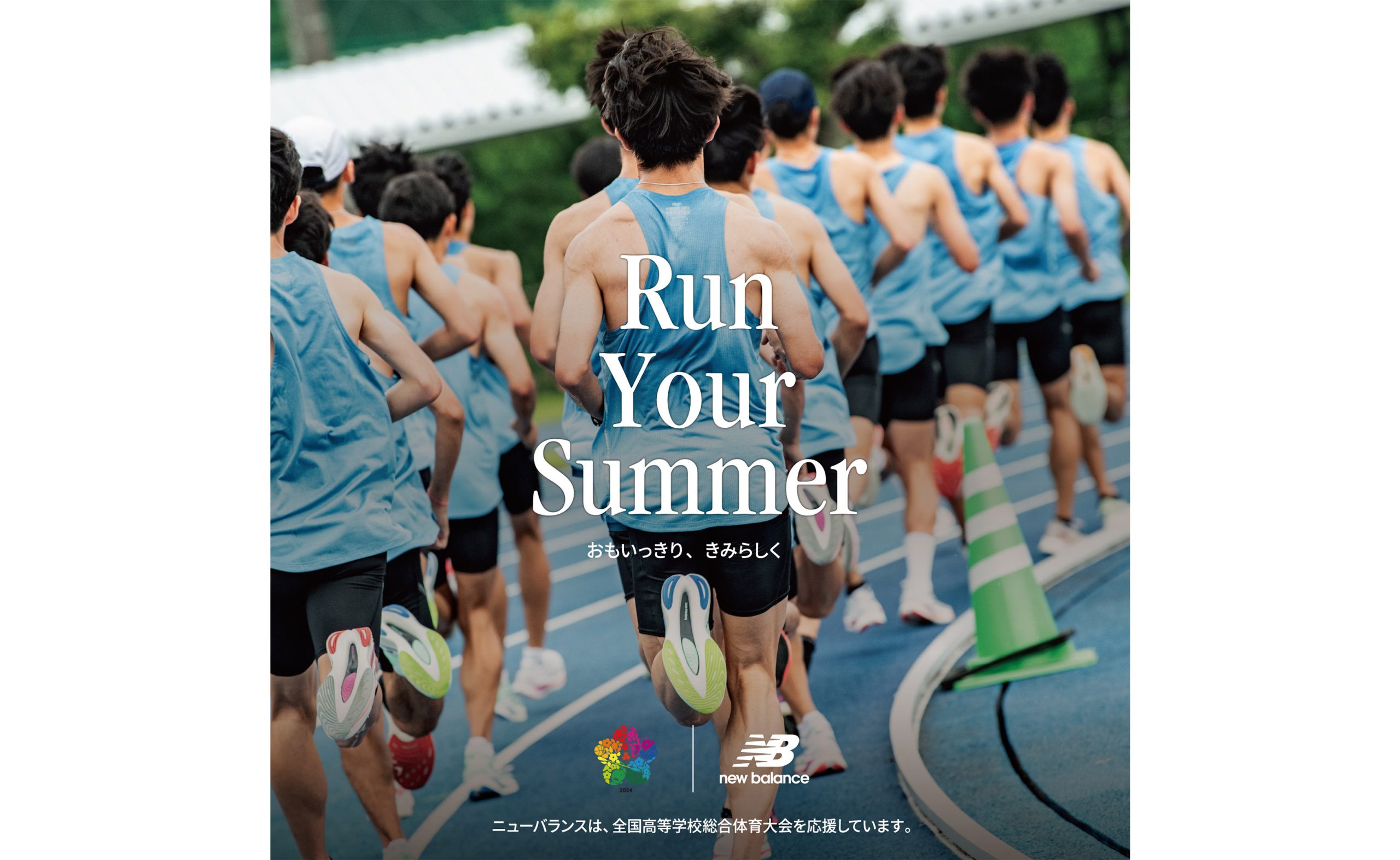 ニューバランスジャパンは、2024年7月21日(日)より北部九州で開催される「令和6年度 全国高等学校総合体育大会」にオフィシャルスポンサーとして協賛いたします。ニューバランスが掲げる、夏の夢舞台に挑む人すべてに向けたメッセージ「Run your Summer」のもと、“インターハイ”をサポートすることにより熱い想いをもって夢に向かってチャレンジするすべての高校生を応援いたします。