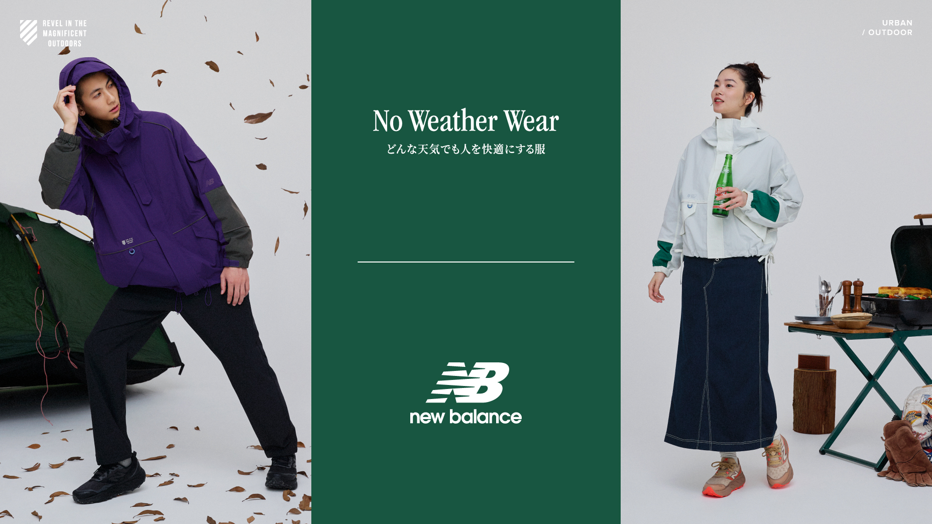 「No Weather Wear」をテーマに、どんな天気でも快適に過ごす服、New Balanceのアーバンアウトドアコレクションとして展開しています。