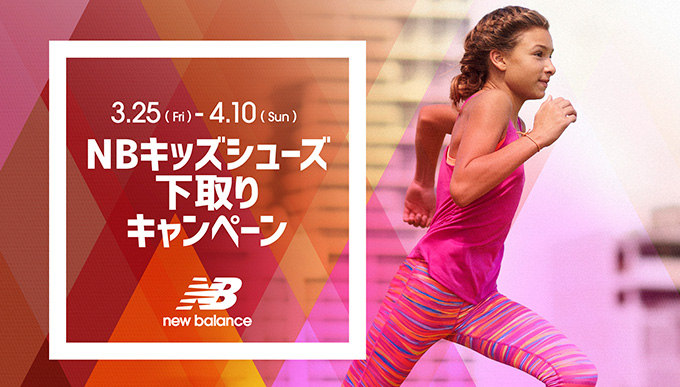 お子様の成長に合わせてシューズを買い換えるチャンス! キャンペーン期間中にご不要になったNBキッズシューズを対象店舗にお持ちいただくと、1点につき、キッズシューズ購入時にご使用いただける“スペシャル10%OFFチケット”をお渡しします。 <NBキッズシューズ下取りキャンペーン> ■キャンペーン期間:3月25日(金)〜4月10日(日) ■対象店舗:ニューバランス東京/ニューバランスお台場/ニューバランス大阪 ■スペシャルチケット有効期間:3月25日(金)〜5月8日(日) ※注意事項 ・ご郵送では承る事ができません。 ・お客様から下取りさせていただきましたお品物は、ご返却できませんので、あらかじめ