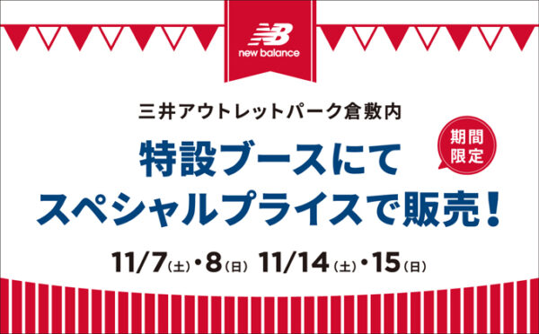 【期間限定】三井アウトレットパーク倉敷内、特設ブースにてニューバランスシューズ・アパレルが正規販売時価格よりMAX80%OFF