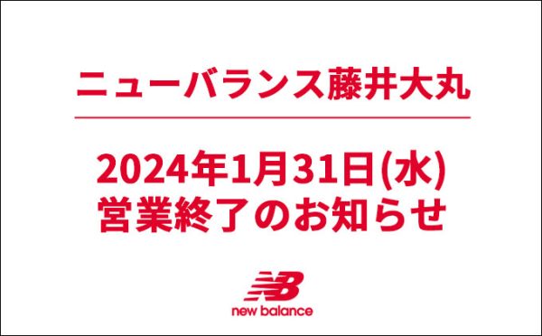 ニューバランス京都藤井大丸 営業終了のお知らせ