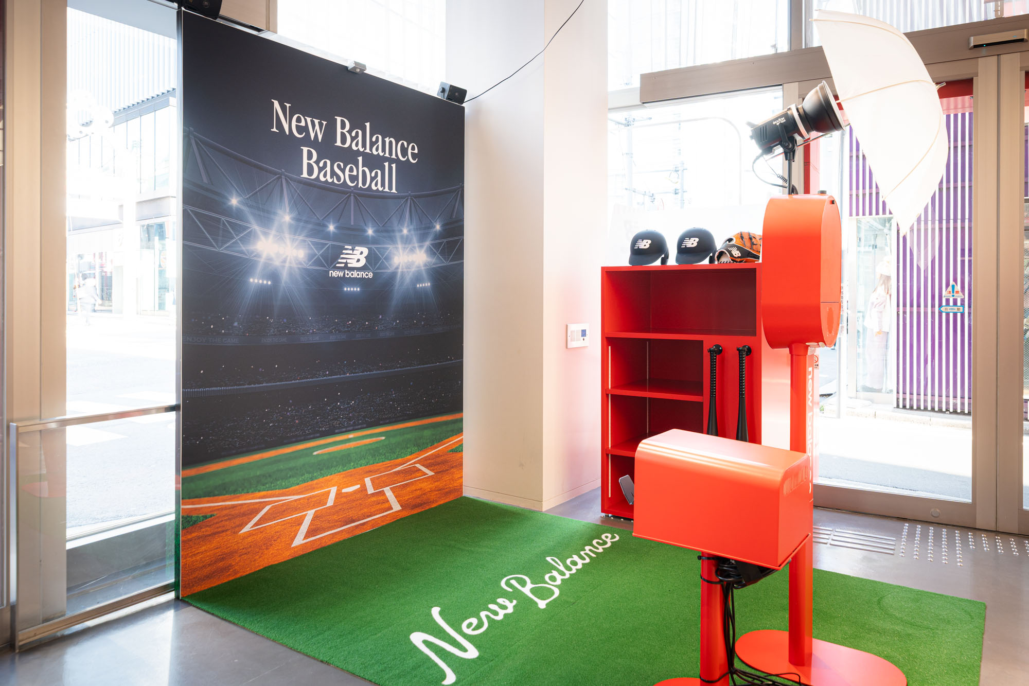 店内には、ニューバランスベースボールを感じられる期間限定のフォトブースや、ご購入で参加できるガチャガチャを用意しました。